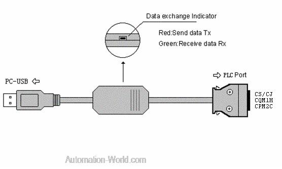 The working power of this cable is from USB port,not provided by the communication port of PLC.The LED of the adapter indicates the sending and receiving status of data.