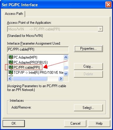 Open the main windows form(Step7-MicroWin), click “Set PG/PC Interface” of the left view and will appear PG/PC setting window.