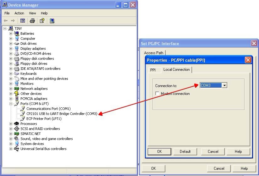 USB/PPI programming cable simulates USB port as traditional serial port (usually COM3), which enables existing programming software(STEP7-MicroWin) to communicate through simulated traditional port and PLC