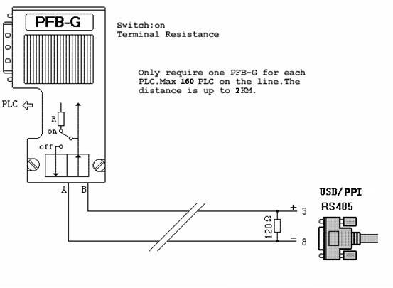 For USB/PPI, the largest communication distance is up to 2000m at the communication speed of 9600bps.