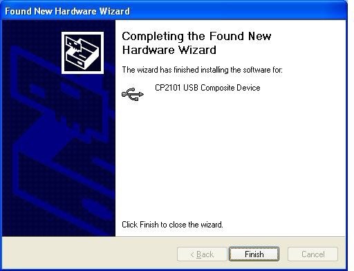 5. When Windows appears “Completing the Found New Hardware Wizard”, click “finish” to end setting up.