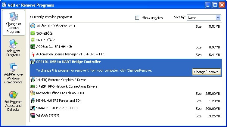 2. Choose “USB Serial Converter Drivers”from "Add or Delete Programs” in operation panel, and click the “Change/Remove” button.