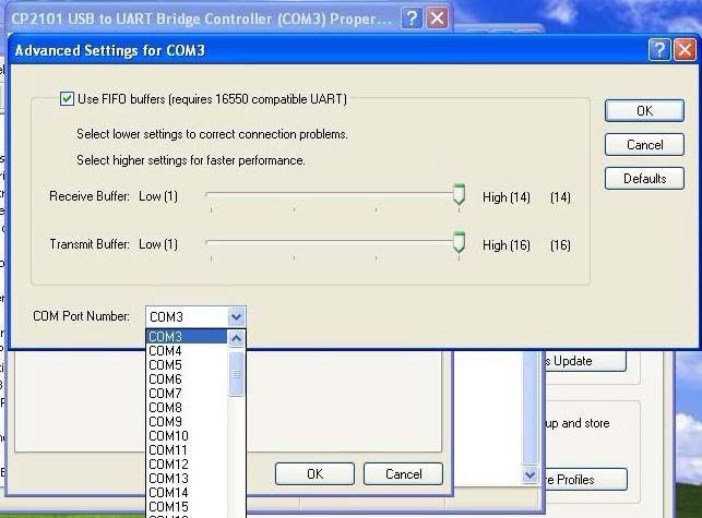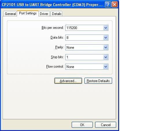 "CP2101 USB to UART Bridge Controller(COMx)". This COMx is the COM message of the USB programming cable.