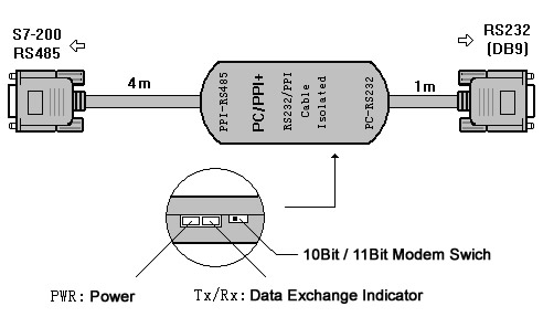 optoelectronic isolated PC/PPI cable,support 10 bit and 11 bit modem communication,with communication indicator,automatically adjust the baud rate from 0 to 115.2Kbps,the largest communication distance of up to 2 kilometers.Not support multi-master station communication.,5M.